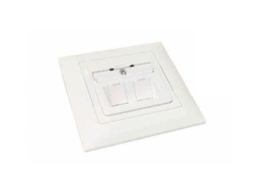 Plastique, blanc, avec caches anti-poussièere intégrés, sur plaque de fixation métallique