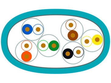 Alu-kaschierte Polyesterfolie, Metallseite aussen, Verseilung 2 x 3 Paare zur Kabelseele